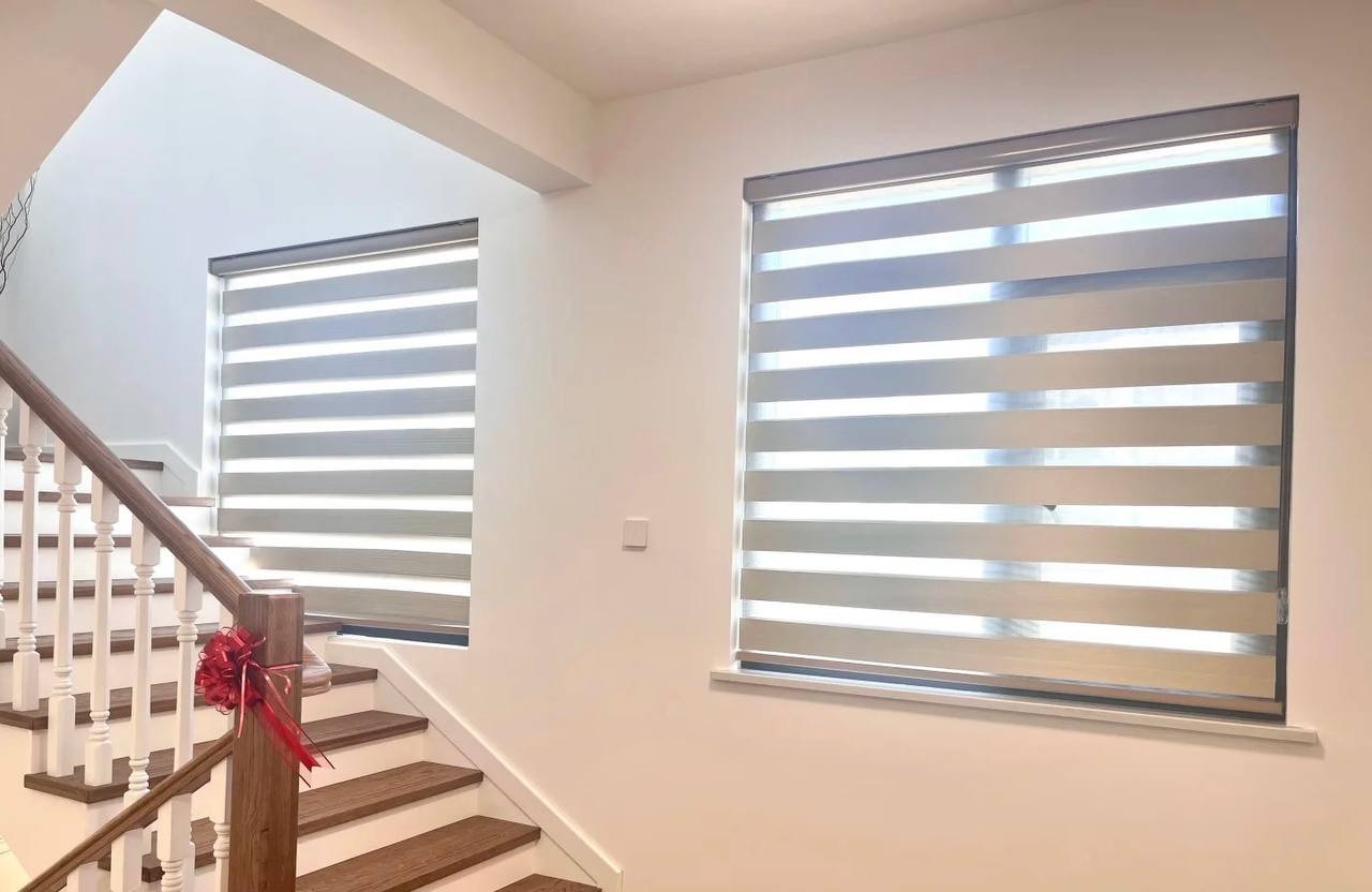 Versatile light control with alternating layers of fabric – Providing privacy, style, and easy adjustment for any space, combining the elegance of curtains with the functionality of roller blinds. Perfect for modern homes and offices.